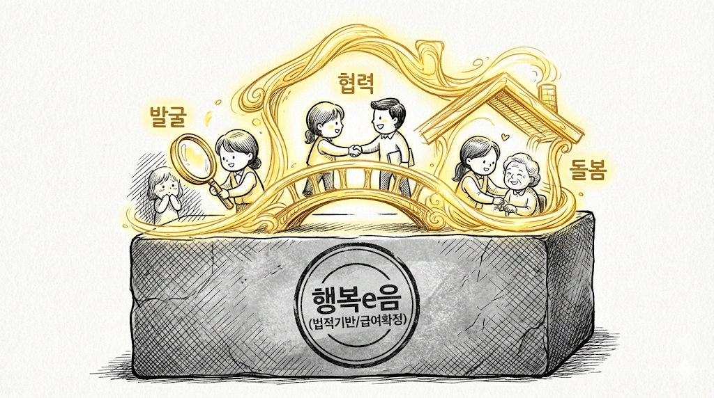행복e음 및 AI IoT 안부확인 서비스와 연계하여 위기가구를 선제적으로 발굴하고 '원스톱'으로 상담을 처리합니다.