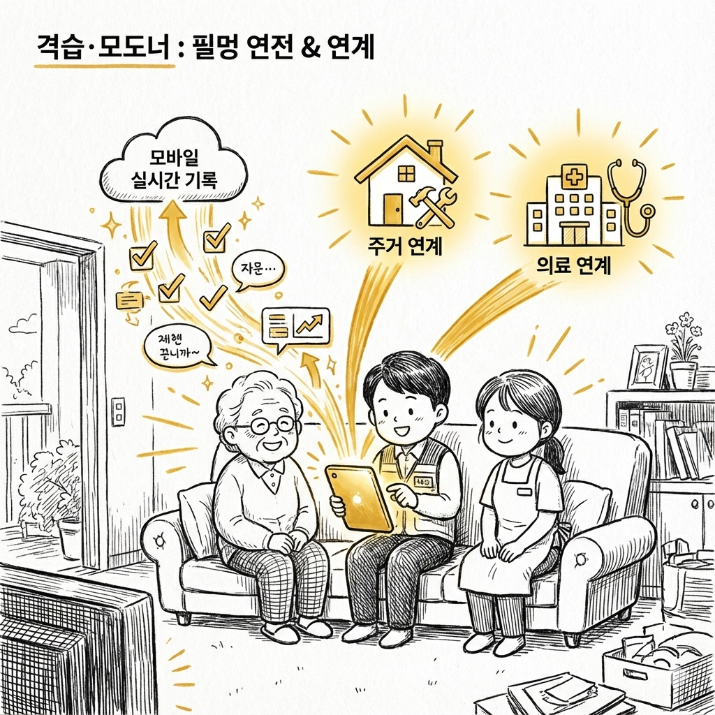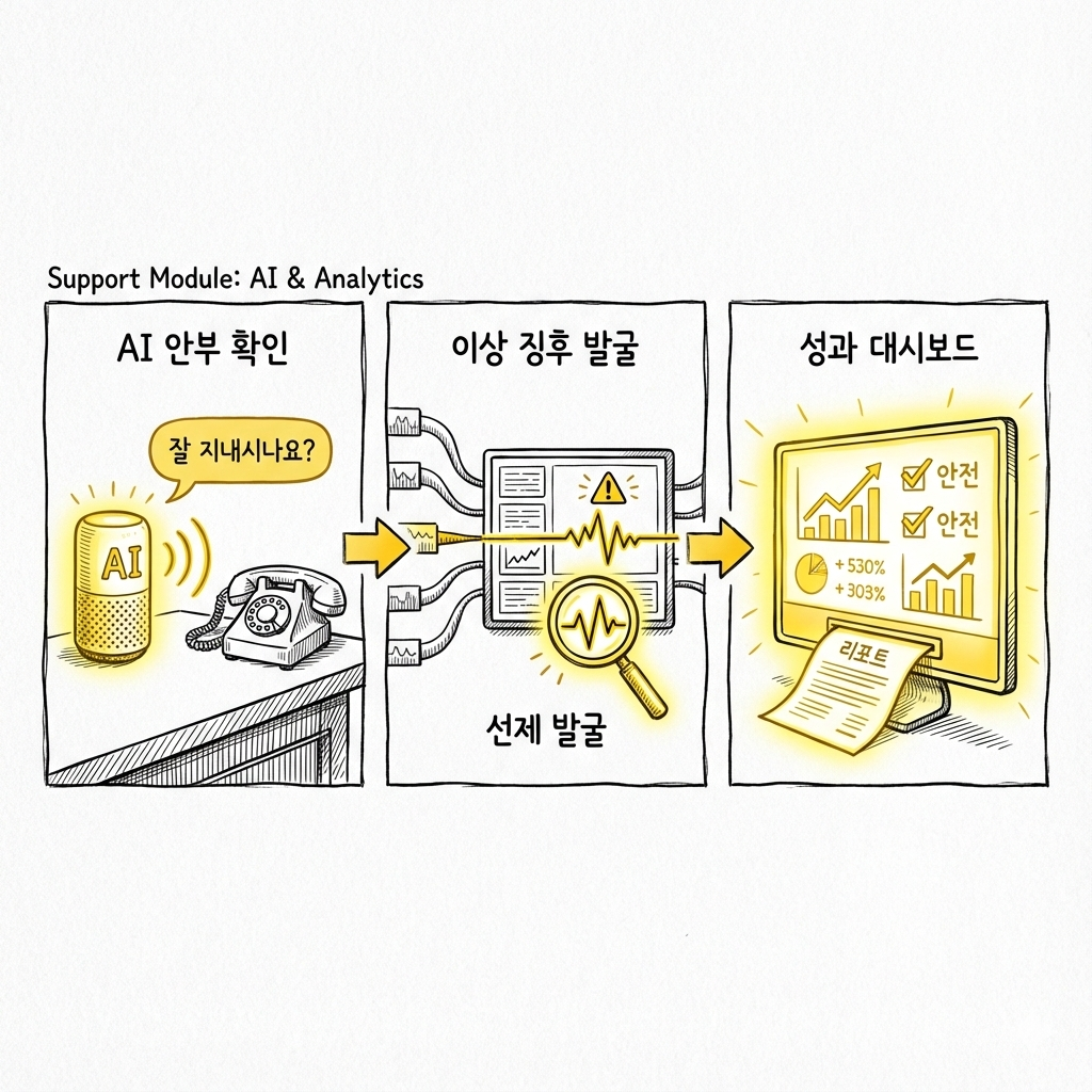 현장 실무자가 수행한 가정 방문 결과와 상태 변화를 기록하고, 위기 징후 발생 시 즉각적인 대응 체계를 가동합니다.