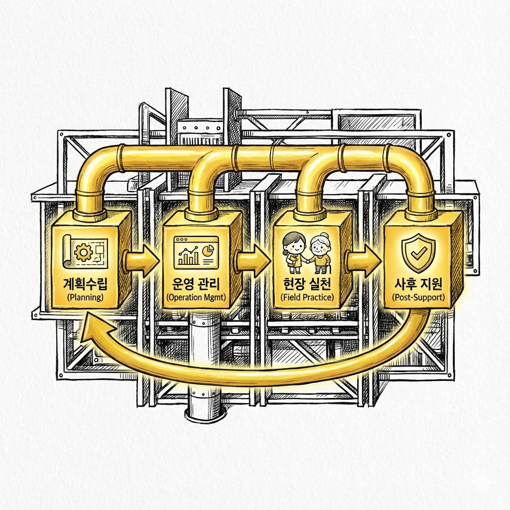 계획수립부터 운영 관리, 현장 실천, 사후 지원까지 하나의 아키텍처에서 흐릅니다.