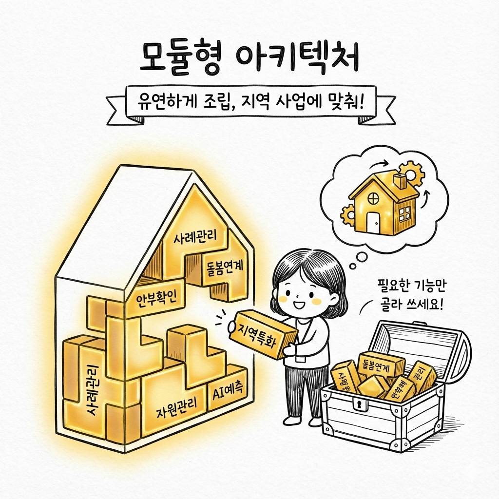 필요한 기능만 골라 쓰고, 지역 사업에 맞춰 유연하게 조립할 수 있는 아키텍처를 갖췄습니다.