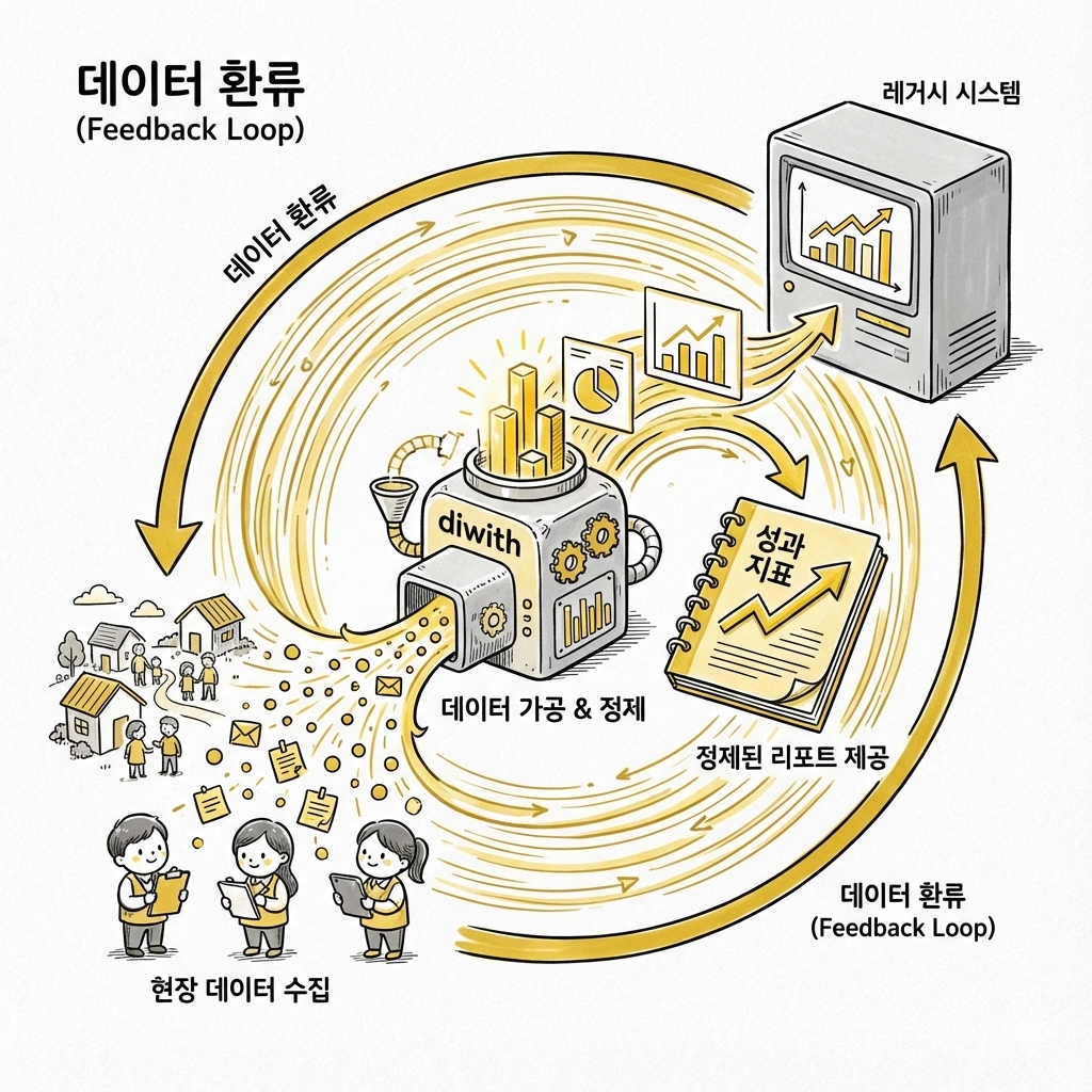 디위드에서 축적된 미세한 현장 데이터를 가공하여, 레거시 시스템의 성과 지표로 활용할 수 있도록 정제된 리포트를 제공합니다.