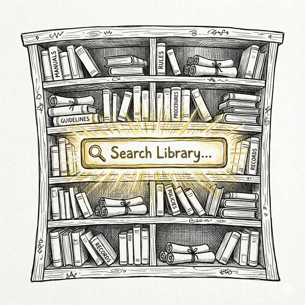 지침, 매뉴얼, 사례집 등 지식 자산을 중앙 집중식으로 제공합니다.