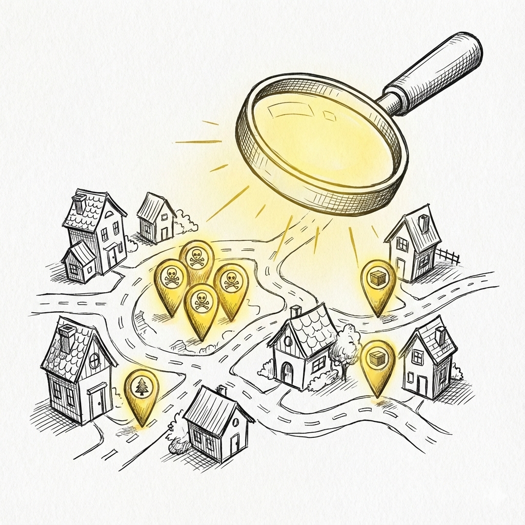 AI가 예측한 고위험군 데이터를 오버레이하여